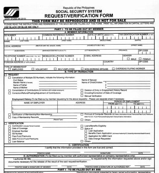 SOCIAL SECURITY SYSTEM – Request/Verification Form